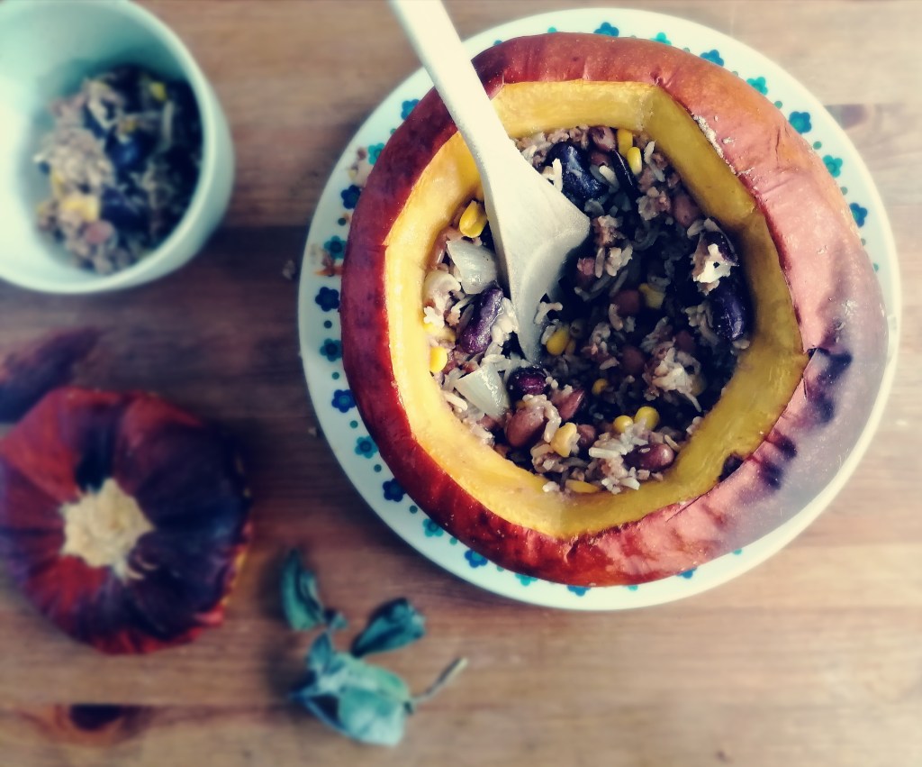 This Hidatsa Stuffed Sugar Pumpkin recipe is based on a recipe from Spirit of the Harvest: North American Indian Cooking, by Beverly Cox and Martin Jacobs- but I have added corn and beans, the other ‘Three Sisters’ vegetables, to complement the pumpkin.
