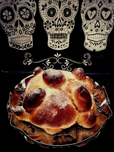 Happy Day of the Dead! Pan de Muerto (Bread of the Dead) is a round Mexican sweet bread, decorated with boney phalange shaped pieces. It’s particularly popular in the run up to Día de Muertos (Day of the Dead), which is held on the 1st and 2nd of November.