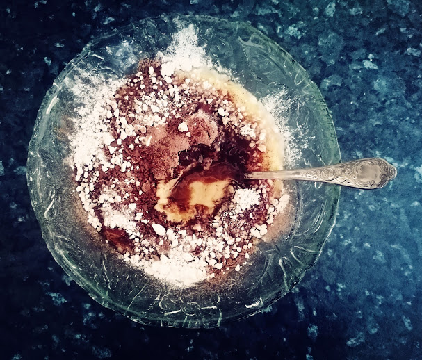 - Sieve the flour and cornflour into the sugar mixture and beat everything together until very well combined, then add the raisin mixture and stir it in thoroughly.