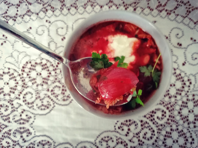 - If you have time, try making some Pampushky (Ukrainian garlic doughnuts) to go with the Borscht.